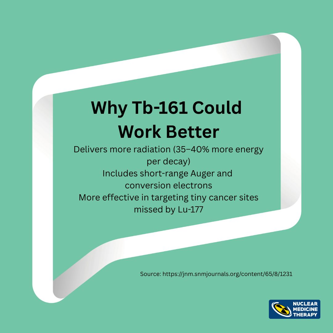 - Tb-161 may be more effective than Lu-177 in targeting small, hard-to-treat cancer deposits